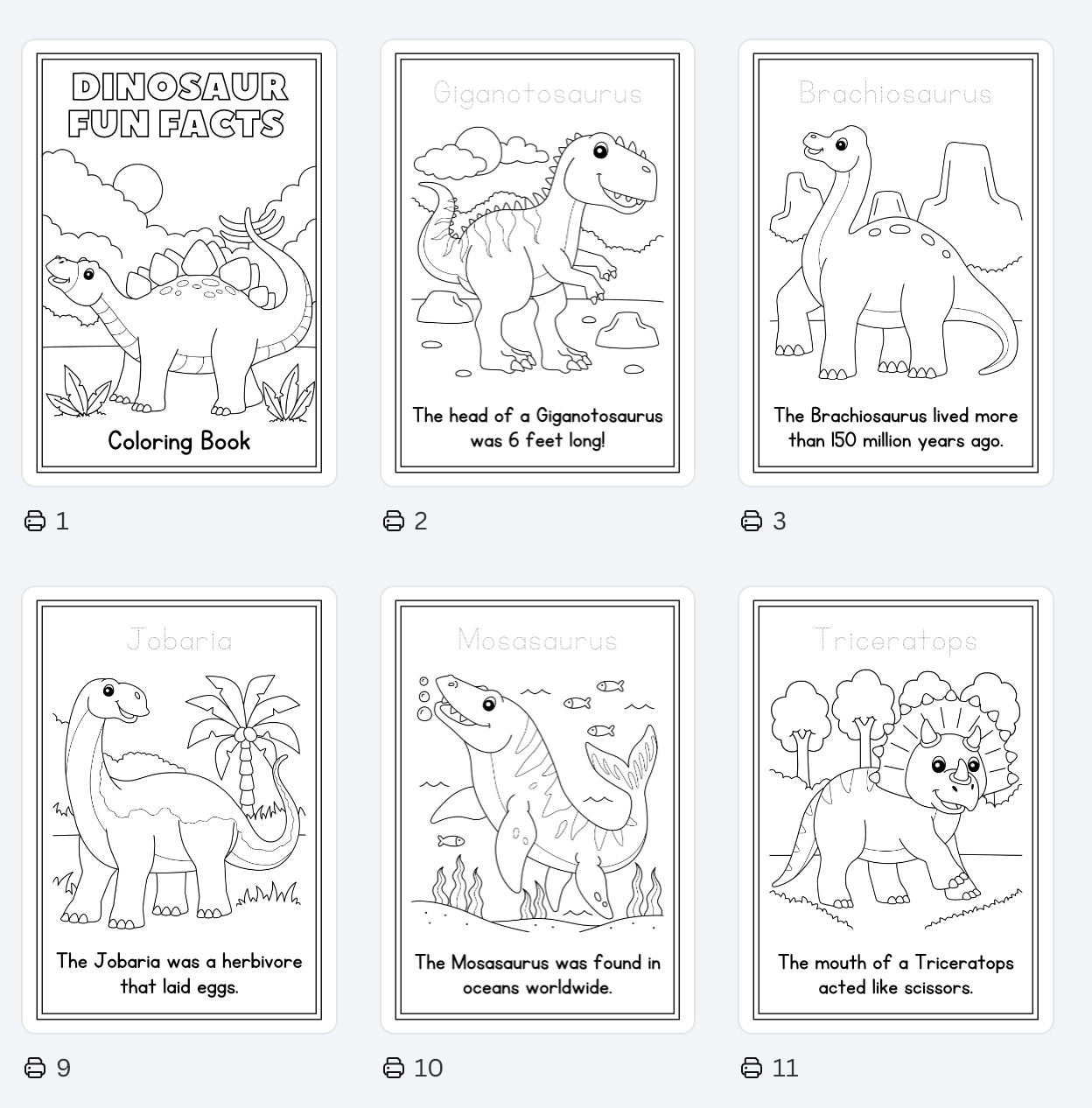 30-page Dinosaur Coloring Book with Fun Facts combining fun coloring and educational learning for kids.