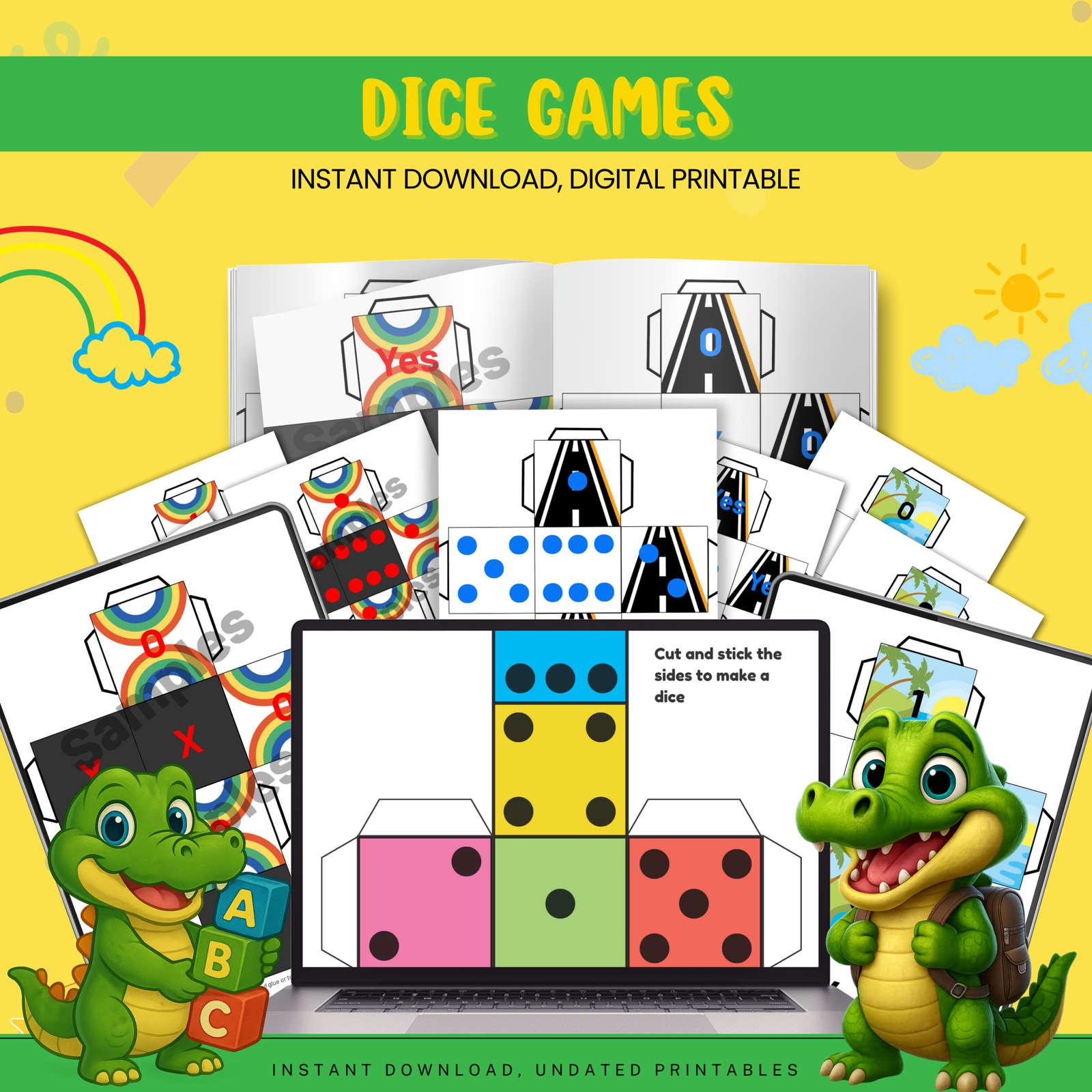 70+ preschool dice games printable pack for fun math, number recognition, and cooperative play. Roll, move, and learn through play – instant download!