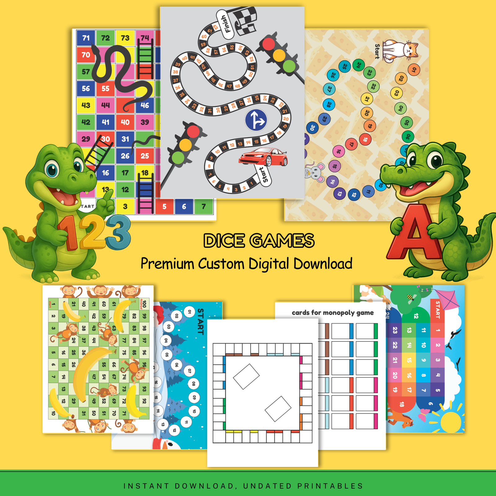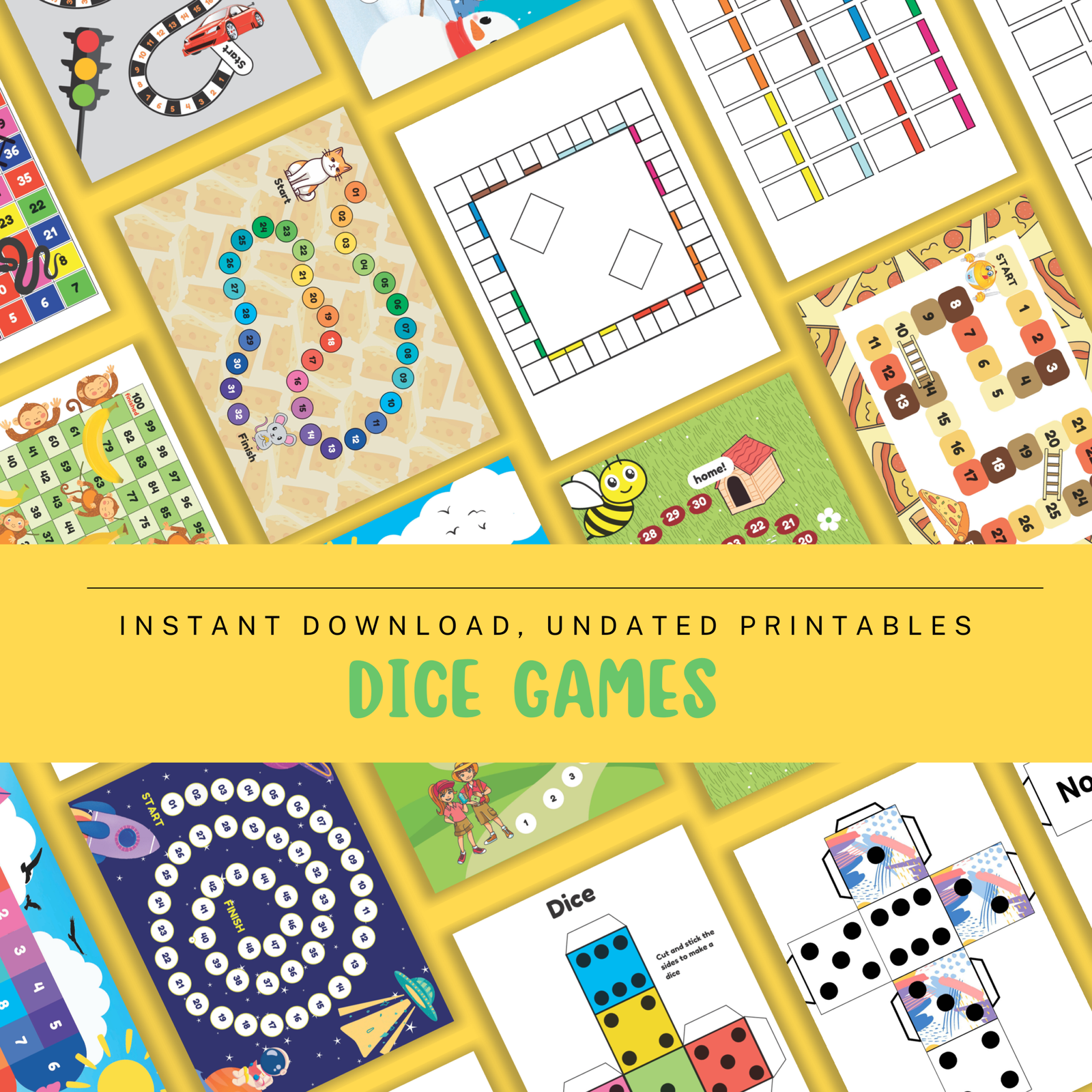 Turn number learning into playtime with this jam-packed bundle of preschool dice games printable worksheets! With over 70 colorful, interactive board games, your early learners will love rolling, moving, and counting their way through fun math practice.